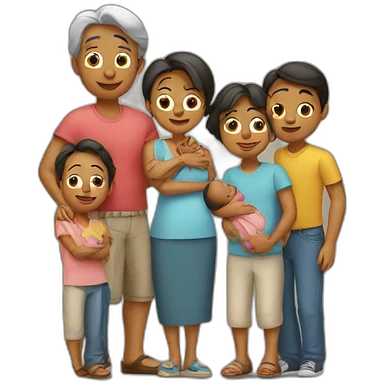 Familia de siete personas madre en padre tres chicas y dos chicos emoji
