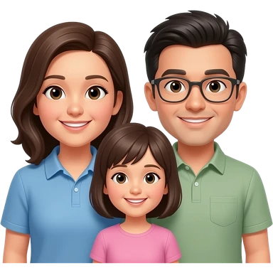 Familia de 4 personas sonriendo: Hombre gordito pelo oscuro, Mujer pelo cafe, hija 1 pelo mono e hija 2 pelo oscuro. emoji