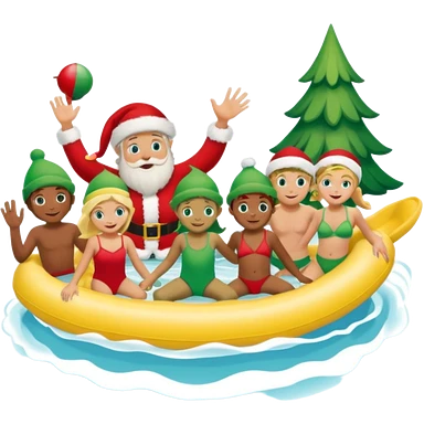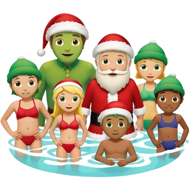 family christmas outing to waterpark with 6 grandchildren, santa and buddy the elf emoji