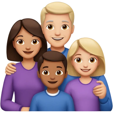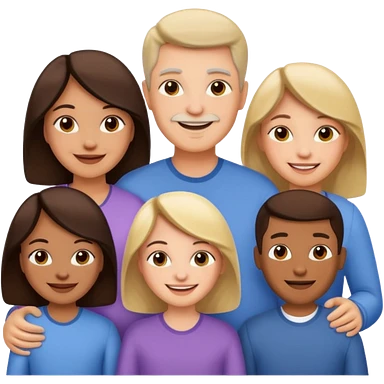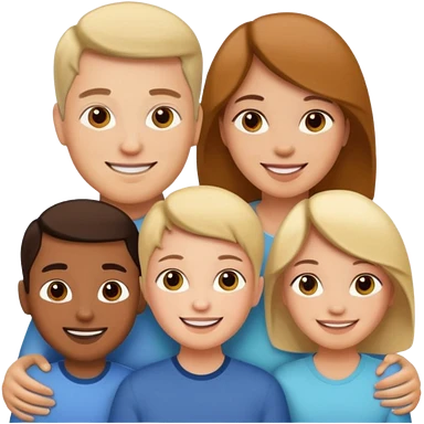 a family with a mother with brown hair and blue eyes, a father with black hair and brown eyes, two boys with brown hair and brown eyes, and a girl with brown bangs and brown eyes. emoji