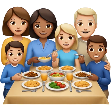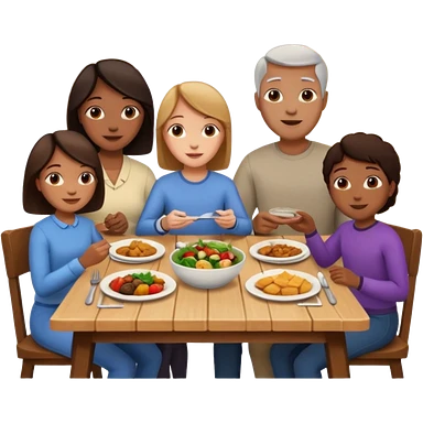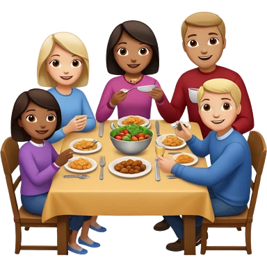 Russian family of 7 members eating dinner together at kitchen table emoji