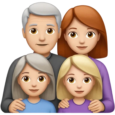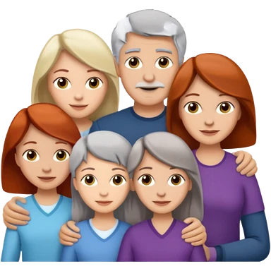 Family emoji showing a family of five. Father has grey hair, mother has mixed grey/brown hair, three daughters with blonde, brunette and redhead hair colors. emoji | AI Emoji Generator
