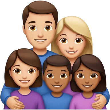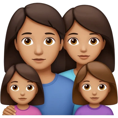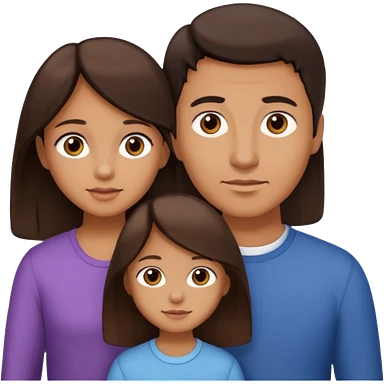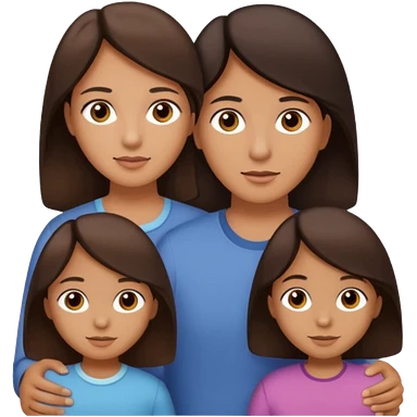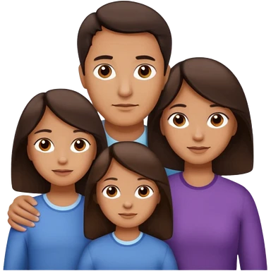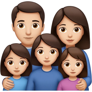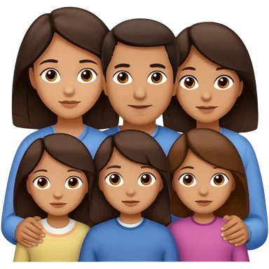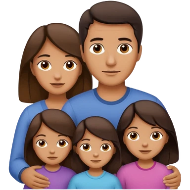 Family portrait with father with dark brown hair and black eyes, mother with light brown hair and brown eyes, three brown little girls with brown eyes emoji
