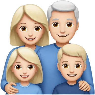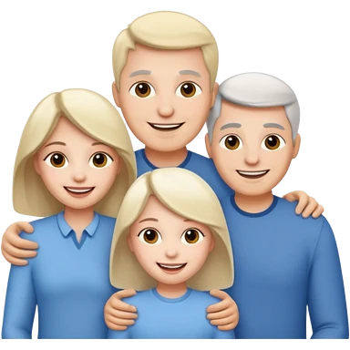 Family. White 60 year old man with dark hair and blue eyes. 60 year old woman with light brown hair and green eyes. Two 25 year old daughters with blonde hair and grey eyes emoji