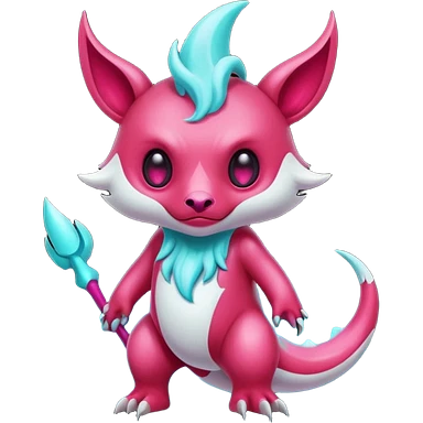 Epic complex detailed sanguine-red magenta pink white pastel realistic aesthetic-scenic-Fakémon-Trico-Sergal-Serval-Vernid-creature with cyan markings emoji