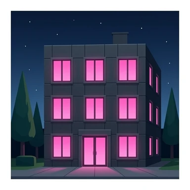 fancy black concrete building with pink glowing window, minimalist style emoji