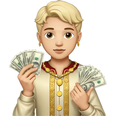medieval summer look worn by a DnD themed fantasy character. bare upper body with a sun-kissed tan and some dirt marks. The character's haven't arms. character is blonde hair, blue eyes, short messy hair, white-skinned man. emoji