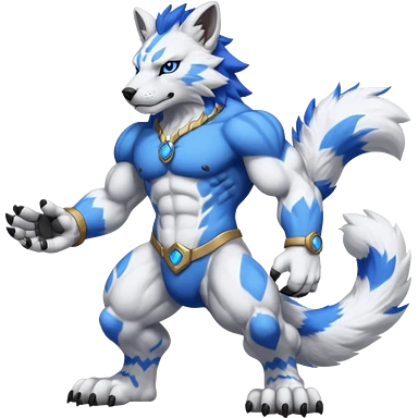 Anthropomorphic anthro furry digitigrade WereGarurumon (full body) emoji