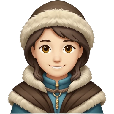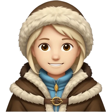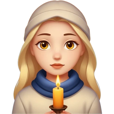 Fantasy human portrait emoji, warm winter scarf around neck, cozy holiday mood, slightly rosy cheeks, simple clean design, no hat, readable emoji style, male/female variant