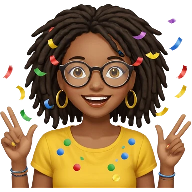 Black female with dark dreadlock hair wearing large round glasses and a yellow top celebrating with confetti emoji