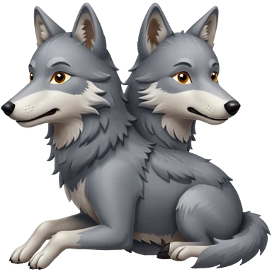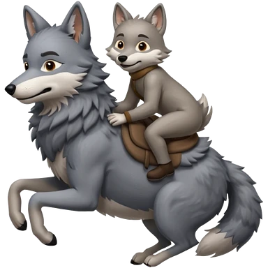 A wolf riding on the back of another little wolf emoji