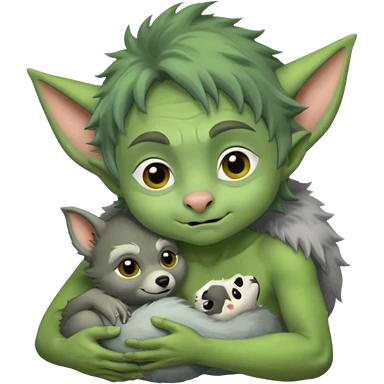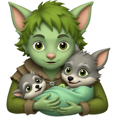A little goblin nursing a baby wolf emoji