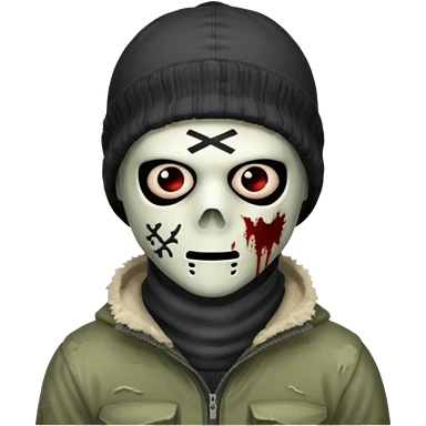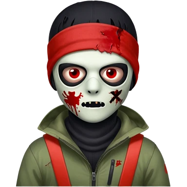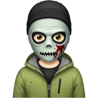 make a, zombie, boy, blackhair with a ski mask pull from nike ou syna, creepy expression emoji emoji