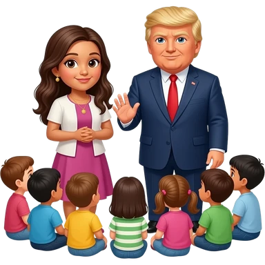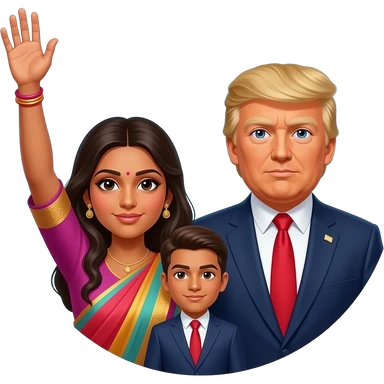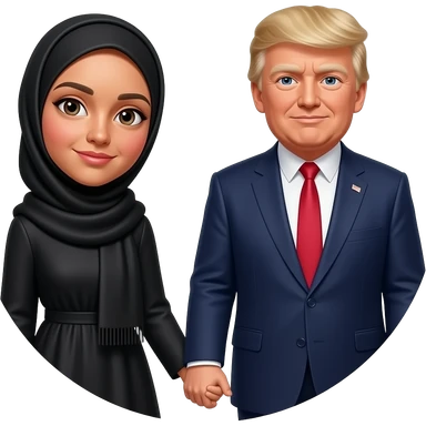 Farheen in hijab holding hand in trust a father President Donald Trump and an along in circle with his Talller son Barron Trump emoji