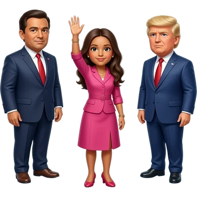 Farheen holding hand high in the sky in trust a father President Donald Trump and an along in circle with his Talller son Barron Trump emoji