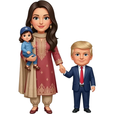 Farheen holding hands in shalwar kameez on Barron Trump in trust in Baron Trump in circle with President Son Barron Trump emoji | AI Emoji Generator