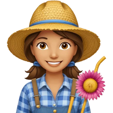 Farmer with Straw Hat A middle-aged farmer wearing overalls and boots, holding a pitchfork or a bundle of hay. emoji