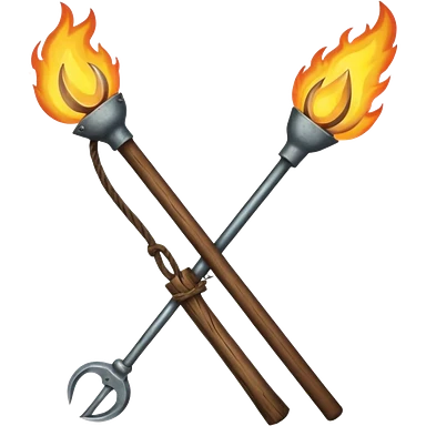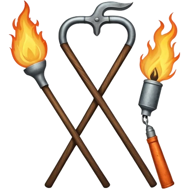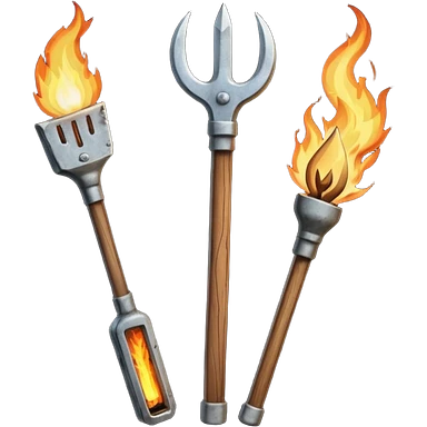 a three pronged farmer's pitchfork and a torch in an x formation emoji