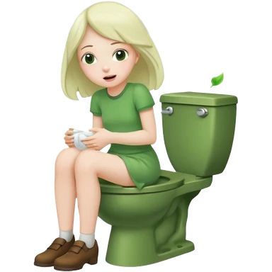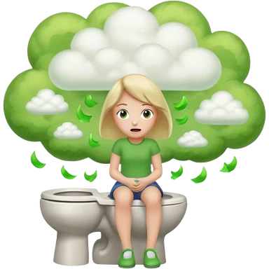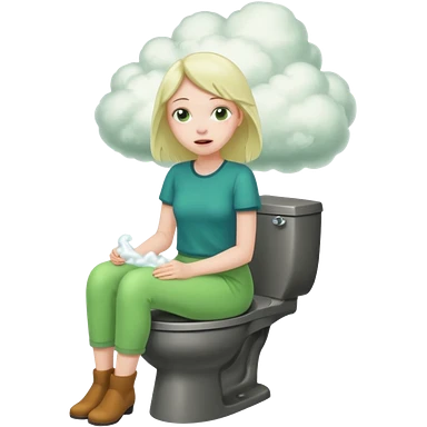 Girl on toilet with green fart clouds around here, she looks relieved emoji