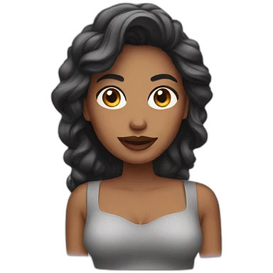 beauty influencer with long textured hair, curvaceous body and light pink clothing emoji