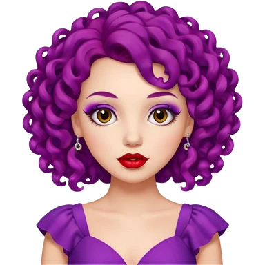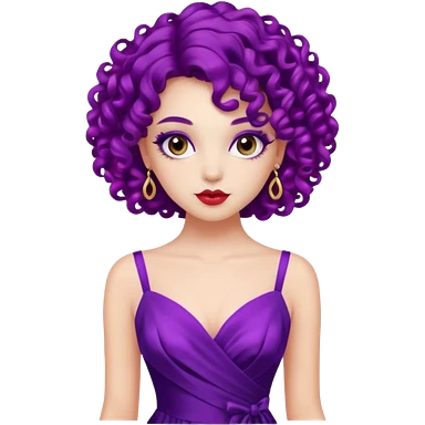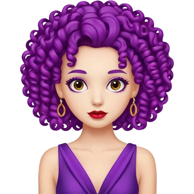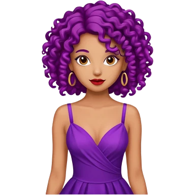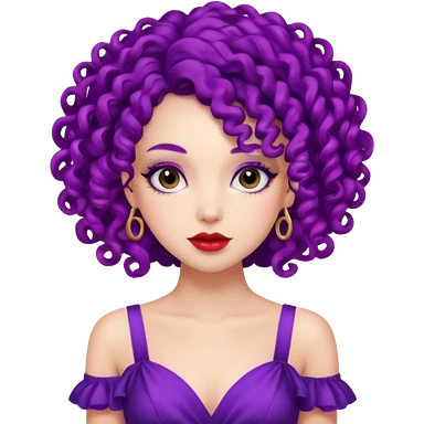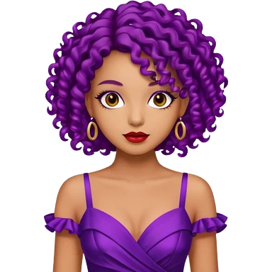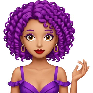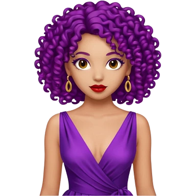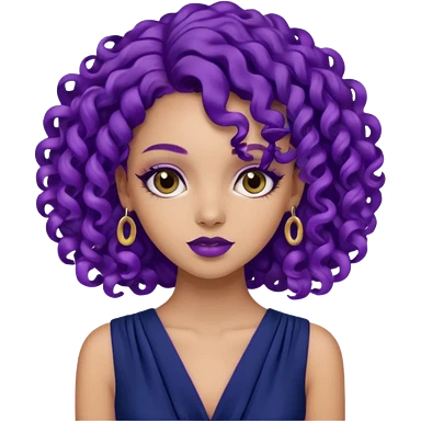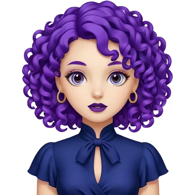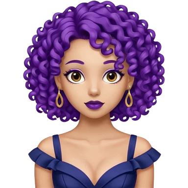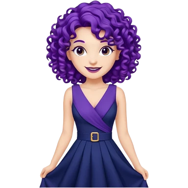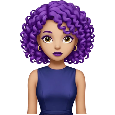 Fashion Model with Purple Curls, navy dress emoji | AI Emoji Generator