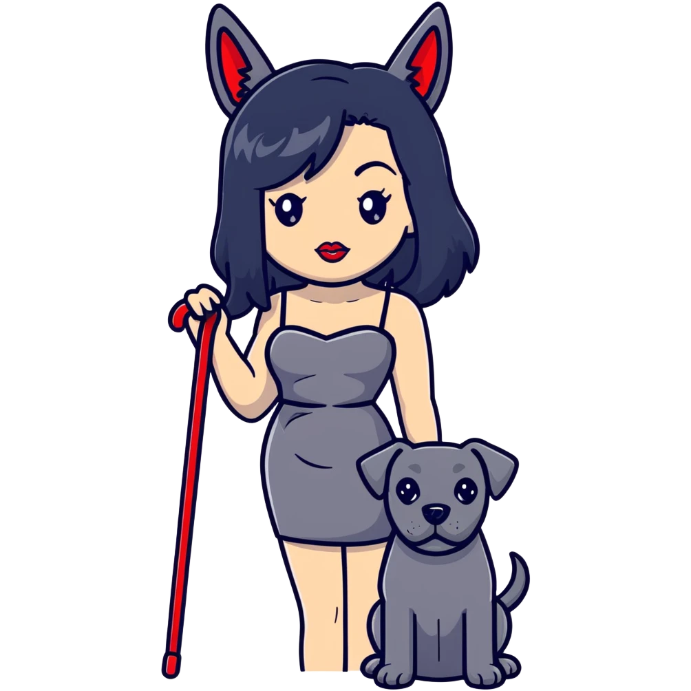 Fashionable woman in sling dress with long black hair, big red lips, and Cane Corso dog ears and short tail image | AI Emoji Generator