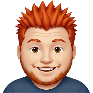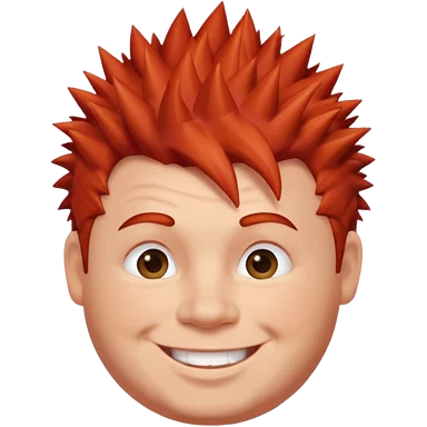 fat spiky haired happy man, red haired emoji