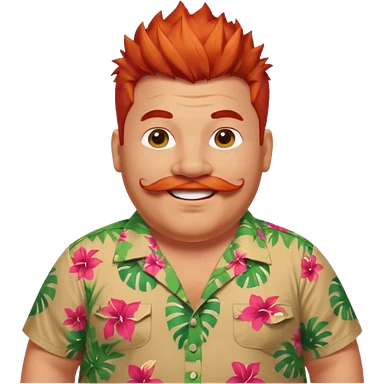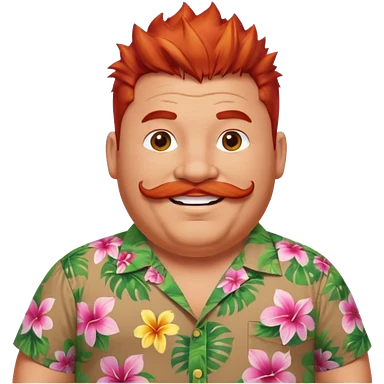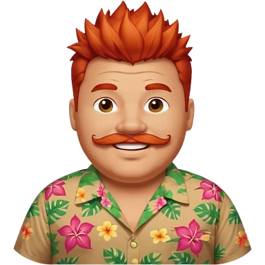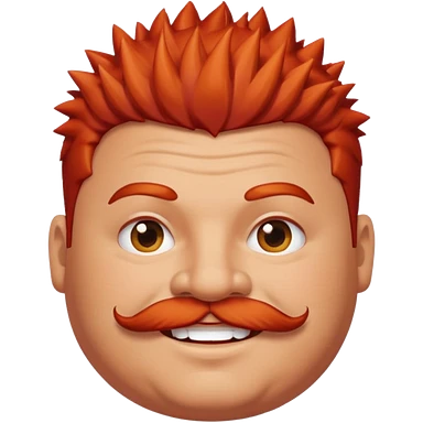 fat spiky haired happy man, red haired and mustache emoji