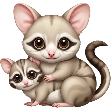 Fat and cute Japanese sugar glider white. A mom anda a baby one emoji