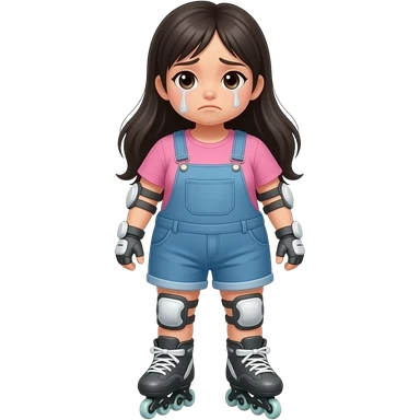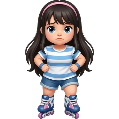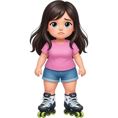 Sad Fat Asian girl on rollerblades with long hair emoji