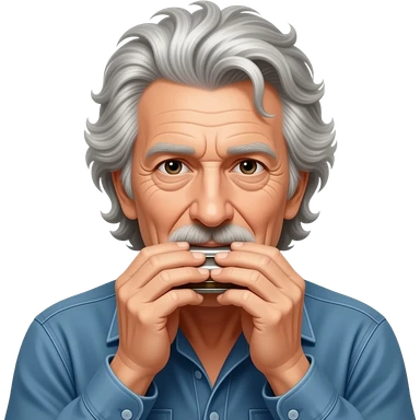 aged Bob Dylan plays the harmonica emoji