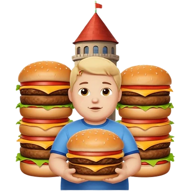 Fat Boy with burger tower emoji | AI Emoji Generator