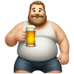Fat brown guy sitting in the sofa with beer and empty cans of beer around him emoji | AI Emoji Generator