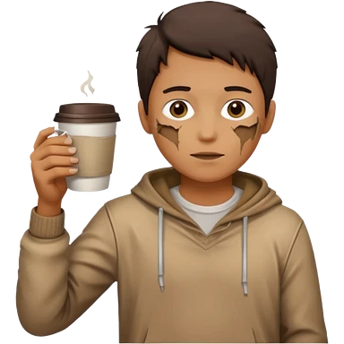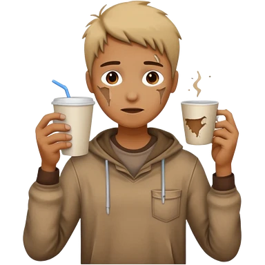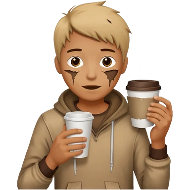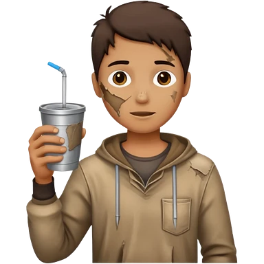 Create an emoji that shows a person wearing torn clothes with visible dirt marks and an empty cup. emoji