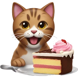 A fat tuxedo cat pooping out a birthday cake with Seoul in the background emoji