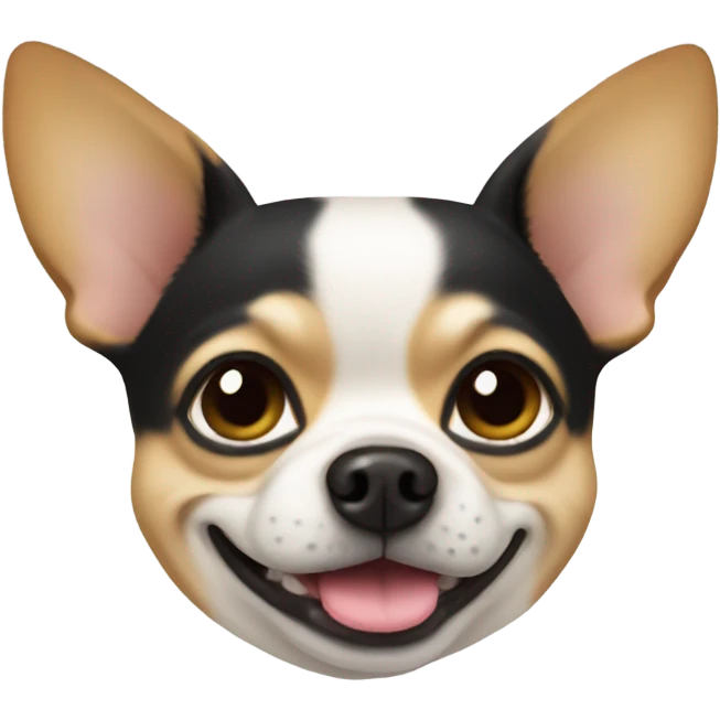 Black chihuahua mix with very large ears and brown eyes and some white hairs emoji