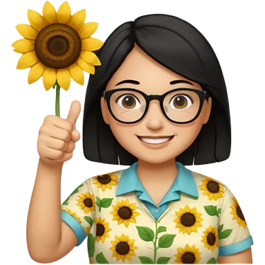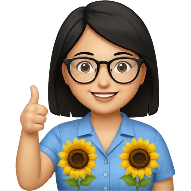 Make my biology teacher shes light brown, wears glasses, female, fat, sunflower shirt under and make her give 1 thumbs up and she has black hair and chubby emoji