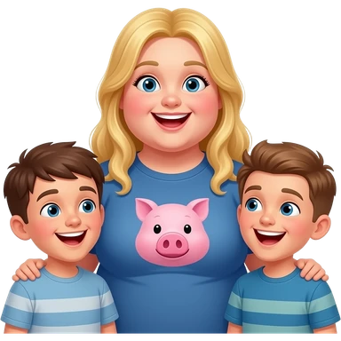 fat girl blonde long hair behind boys laughing at her she has a pig text t shirt emoji