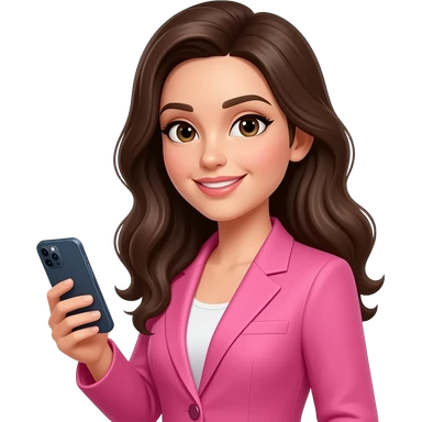 brunette girl with curly medium length hair, brown eyes, slightly tan skin, holding a phone emoji