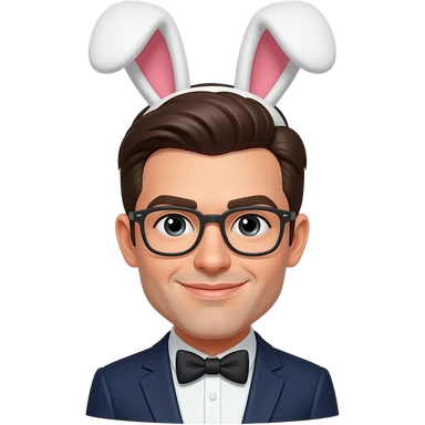 Man with bunny ears and bowties bust size emoji