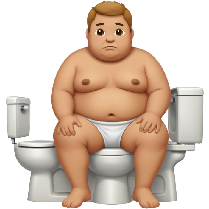 fat guy sitting on toilet reading newspaper no shirt front view emoji