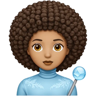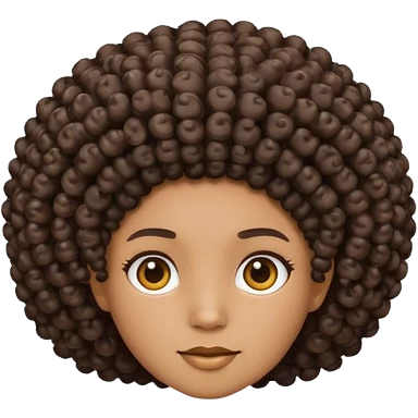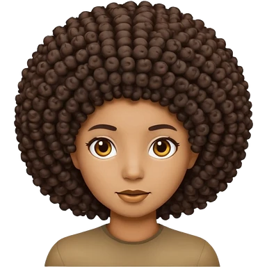 Create an iOS-style emoji of Ice Spice. Neutral facial expression, front-facing head only. Curly afro hairstyle. Clean Apple emoji style, smooth shading, simple shapes, plain background. emoji