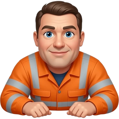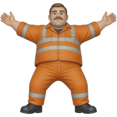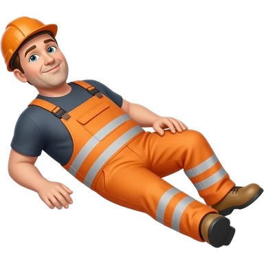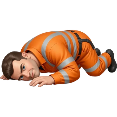 fat MAN IN ORANGE HIVIS OVERALLS, laying face down on floor, side view emoji | AI Emoji Generator