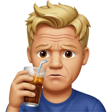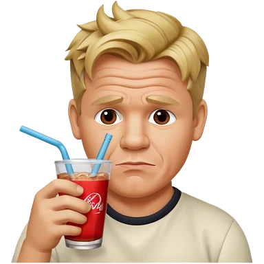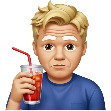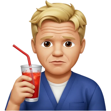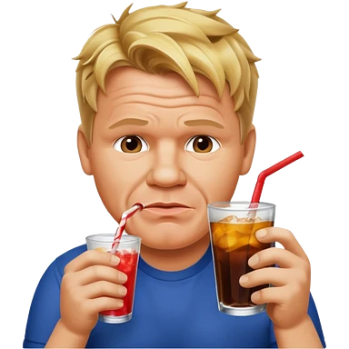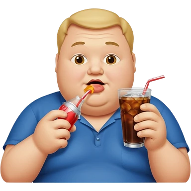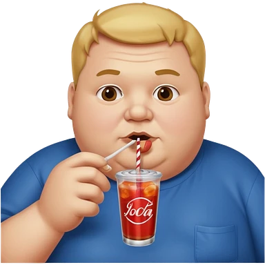 fat man in blue sweatsuit with white stripe sipping cup emoji