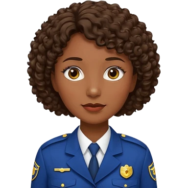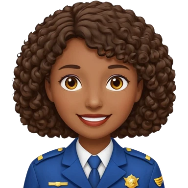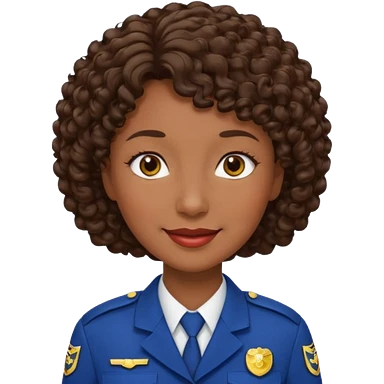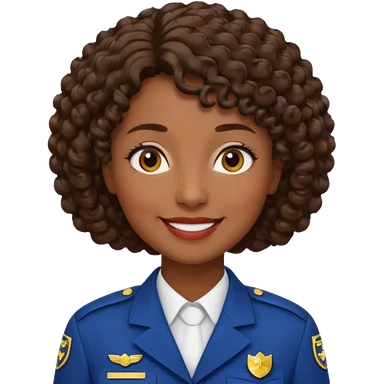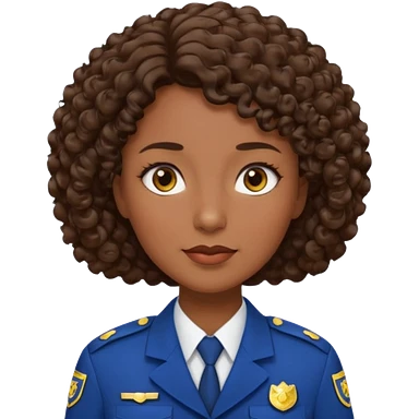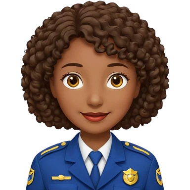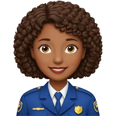 Middle-aged Female: dark skin, wearing uniform, approachable face, curly short brown hair emoji