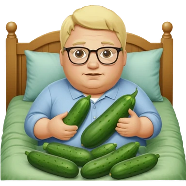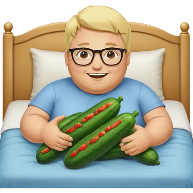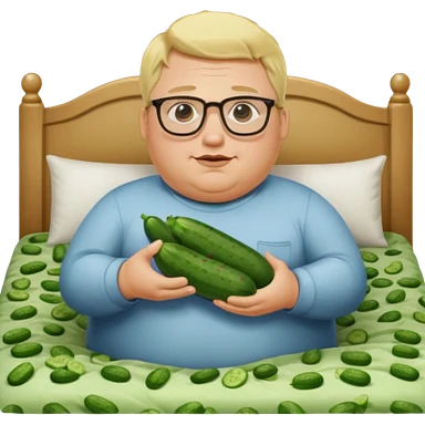 blond fat man with glasses man with cucumbers bed emoji