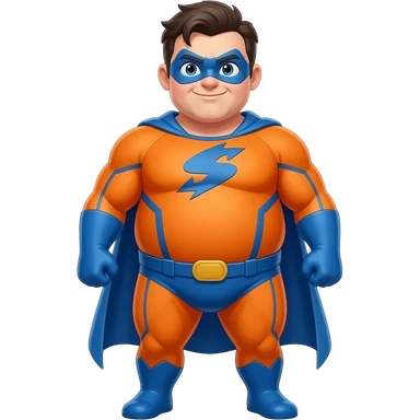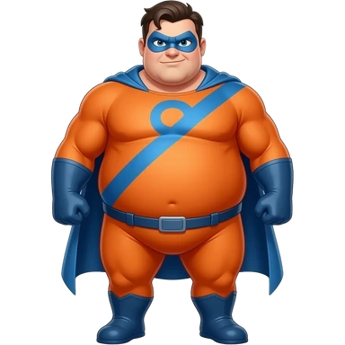 Anime men orange superhero suite very fat blue line blue masks full body emoji