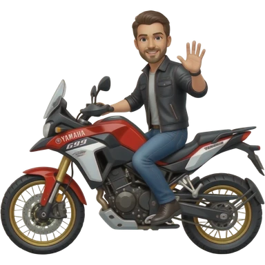 Man on Yahama Tenere 690 motorcycle red black and white waving emoji