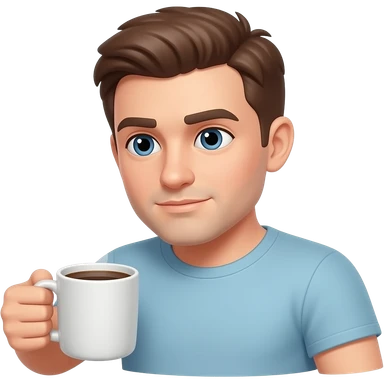 Blank face, slightly slouched, maybe holding coffee emoji