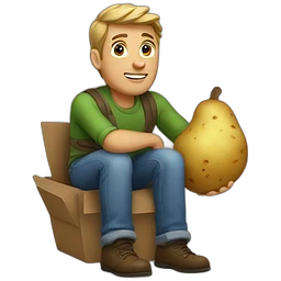 Create a 3D Pixar-style Mr. Potato Head character with a rounded, slightly uneven shape, expressive eyes, a wide smile, and cartoonish limbs, dressed in a colorful suit with intricate embroidery, a vibrant hat adorned with a feather emoji